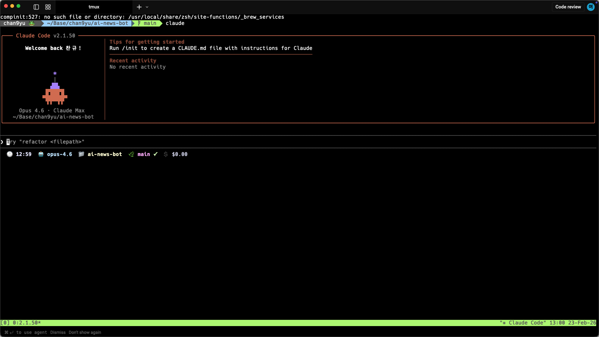 💡 tmux는 macOS에서 가장 안정적으로 작동합니다.