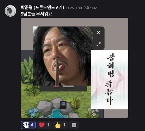 어 그런데.. 많이 힘든 것 같아요.... 과제 마감 전까지 사람들이 잠도 안 자고 계속 과제만 하고 있더라고요 ㅠㅠ 과제 볼륨도 크고 회사 업무 때문에 시간도 부족해서 아쉬웠던 시작이었지만, 팀원들이 서로 으쌰으쌰 해주면서 서로 진도를 나가는 게 정말 힘이 되었습니다. 우리 팀 정말 최고인 것 같아요 👍