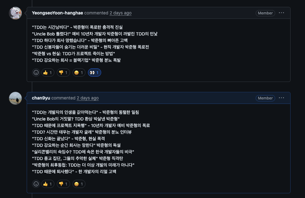 Chapter 3 테스트 코드의 7주차가 시작되었습니다. 지난주 연차의 여유로움은 끝나고 다시 일상으로 돌아왔지만, 그래도 이번 주는 적당히 바쁘지 않아서 과제에 집중할 수 있었어요.
